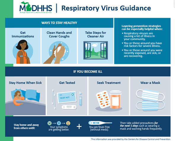 The Branch-Hillsdale-St. Joseph Community Health Agency has seen an increase in the number of reported cases of respiratory illnesses, including Flu and COVID-19, the previous two weeks. Statewide surveillance shows Michigan’s Influenza activity this previous week is “High”, but it is not too late to get vaccinated to reduce your risk of severe illness or hospitalization.